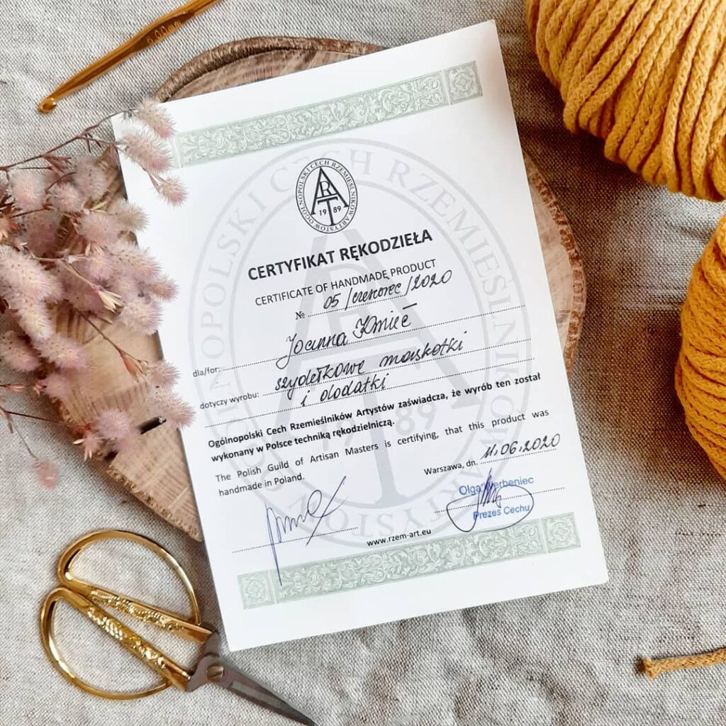 W międzyczasie brałam także udział w wielu kursach dotyczących prowadzenia instagrama, marketingu, czy wykonywania zdjęć rękodzieła. Otrzymałam także certyfikat rękodzieła. Wciąż poszerzam swoją wiedzę i ćwiczę nowe techniki, by moje prace były jeszcze lepsze.